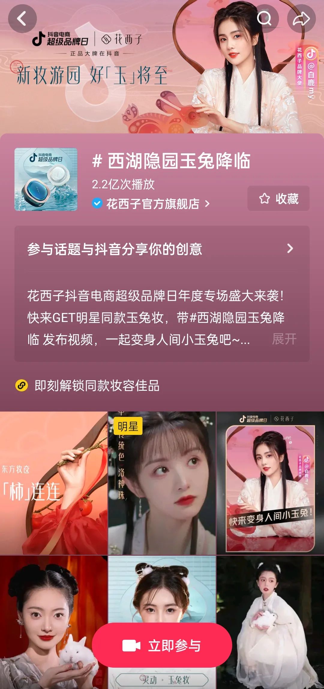 相較于單純的產(chǎn)品營銷,花西子則是在新年之前連續(xù)兩次在抖音、小紅書平臺發(fā)起“玉兔妝”的營銷。邀請明星田曦薇、白鹿及諸多美妝大V上陣,抖音單平臺相關(guān)視頻播放量共計(jì)達(dá)2.2億次。