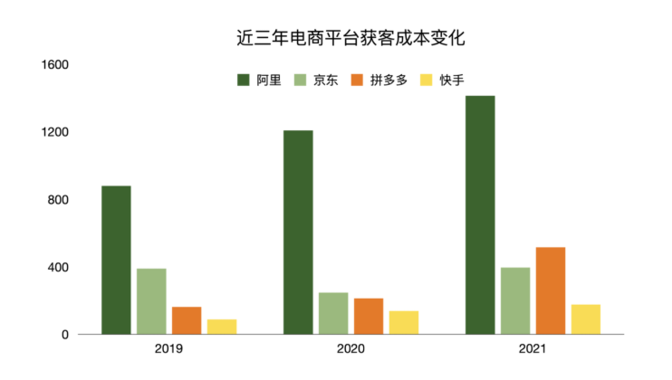 由于國內(nèi)互聯(lián)網(wǎng)流量紅利早也消失,當下多家電商購物APP的獲客成本一直被不斷拉高。難以尋找新增流量之下,即使頭部電商購物平臺的用戶增長也接近天花板。以京東為例,其在2021年一季度時年度活躍用戶以及由年度活躍用戶所貢獻的自營收入在增速上就已出現(xiàn)明顯放緩。