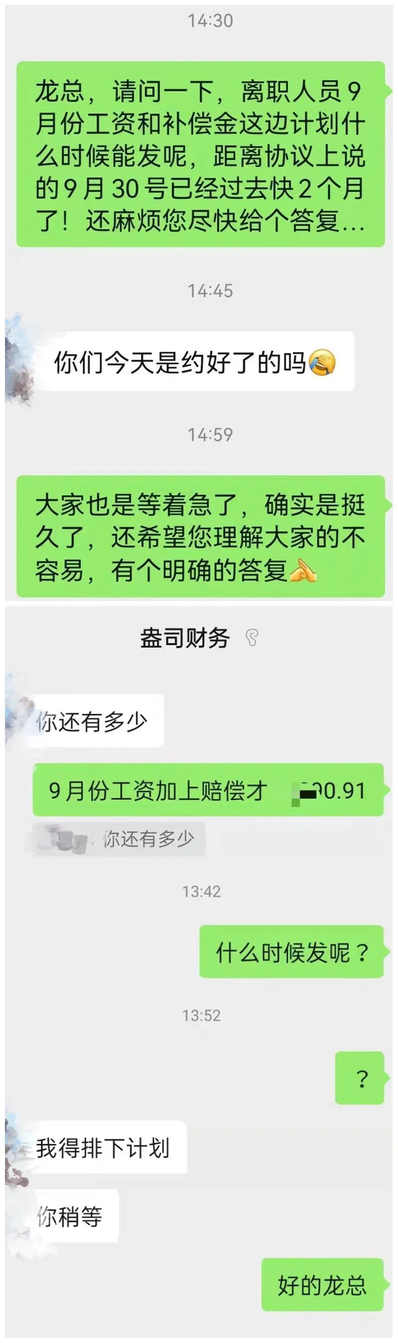 現(xiàn)在林林都還在找昂司財務詢問工資和補償金,但一直被和稀泥,也沒得到具體發(fā)放時間。