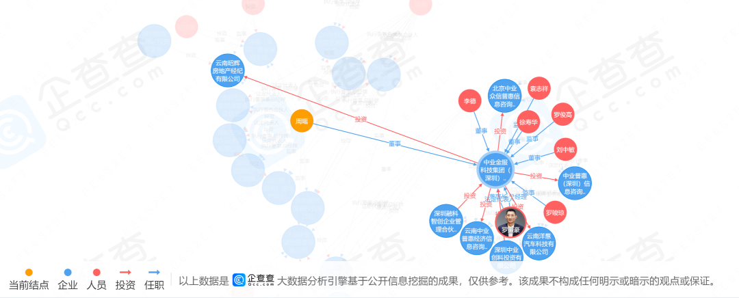 團居客在2021年的大股東由“云南昭輝房地產(chǎn)有限公司”變更為“陳建”,而云南昭輝的法定代表人是“周瑤”,“周瑤”也是羅振豪控股的中業(yè)金服科技集團(深圳)股份有限公司的董事。