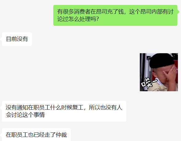 小程序崩潰,客服電話打不通,也讓不少在昂司充了錢的消費者找不到投訴渠道。而關于如何處理消費者退卡退費事宜,林林表示,“沒有通知在職員工什么時候復工,所以也沒有人會討論這些事情,在職員工也已經(jīng)走了仲裁。”