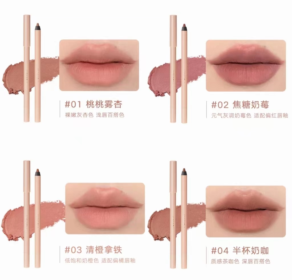 而在顏色上,不同于以往鮮艷的彩虹色唇線筆來打造明顯的唇部輪廓,如今飽和度、自然的肉色唇線筆是市場主流。這樣的顏色的唇線筆更能方便暈染唇周,模糊唇線,自然地延展嘴唇輪廓以達(dá)到立體豐唇的效果。
