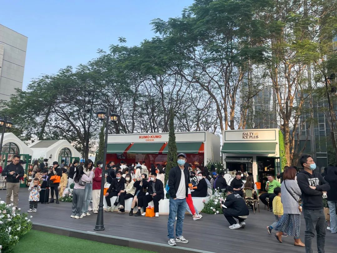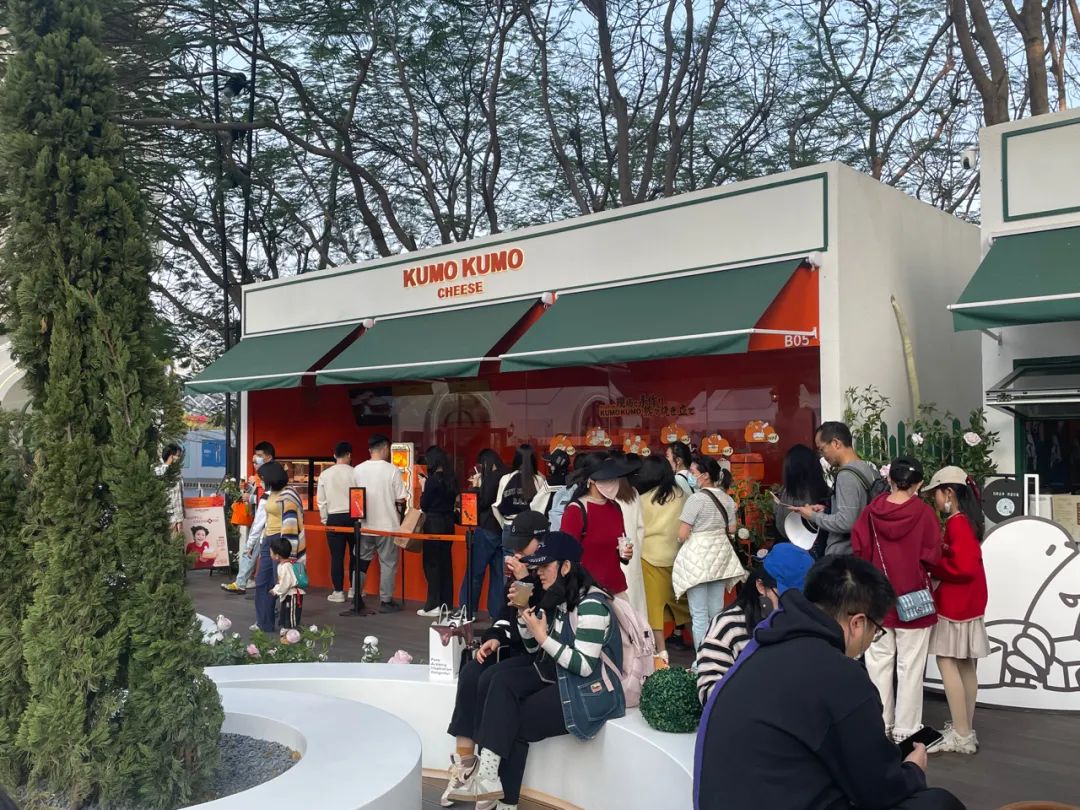 現(xiàn)場有兔子許愿池,還有KUMO KUMO、HUGS、WONDERLAB、前檐書店等新消費(fèi)品牌pop-up,吸引不少人前來消費(fèi)打卡。