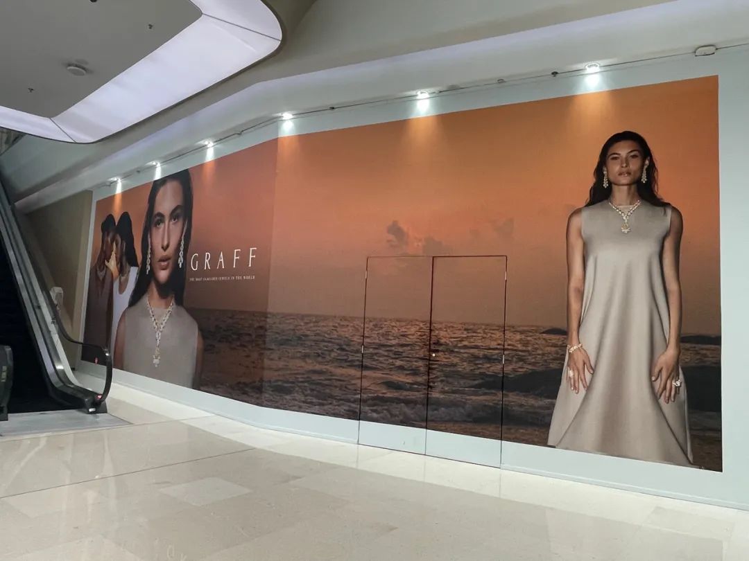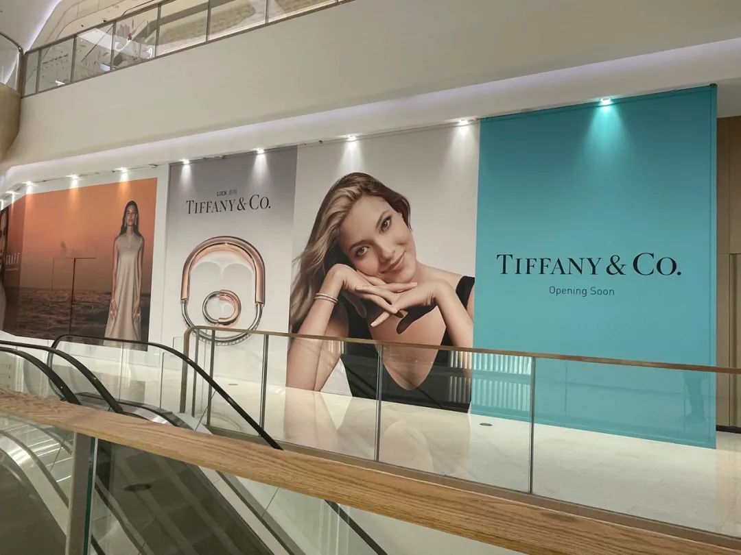 TIFFANY圍擋位置在DIOR對(duì)面,F(xiàn)endi旁邊,LV的斜對(duì)面,接近拐角上二樓電梯處。