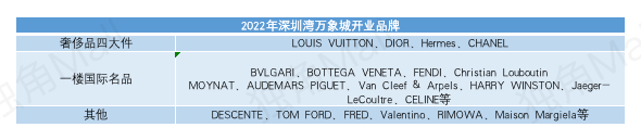 此外,據(jù)官方微信公眾號(hào)透露,2022年深圳灣萬象城新入駐的品牌還有DESCENTE、TOM FORD、FRED、Valentino、RIMOWA、Maison Margiela等。