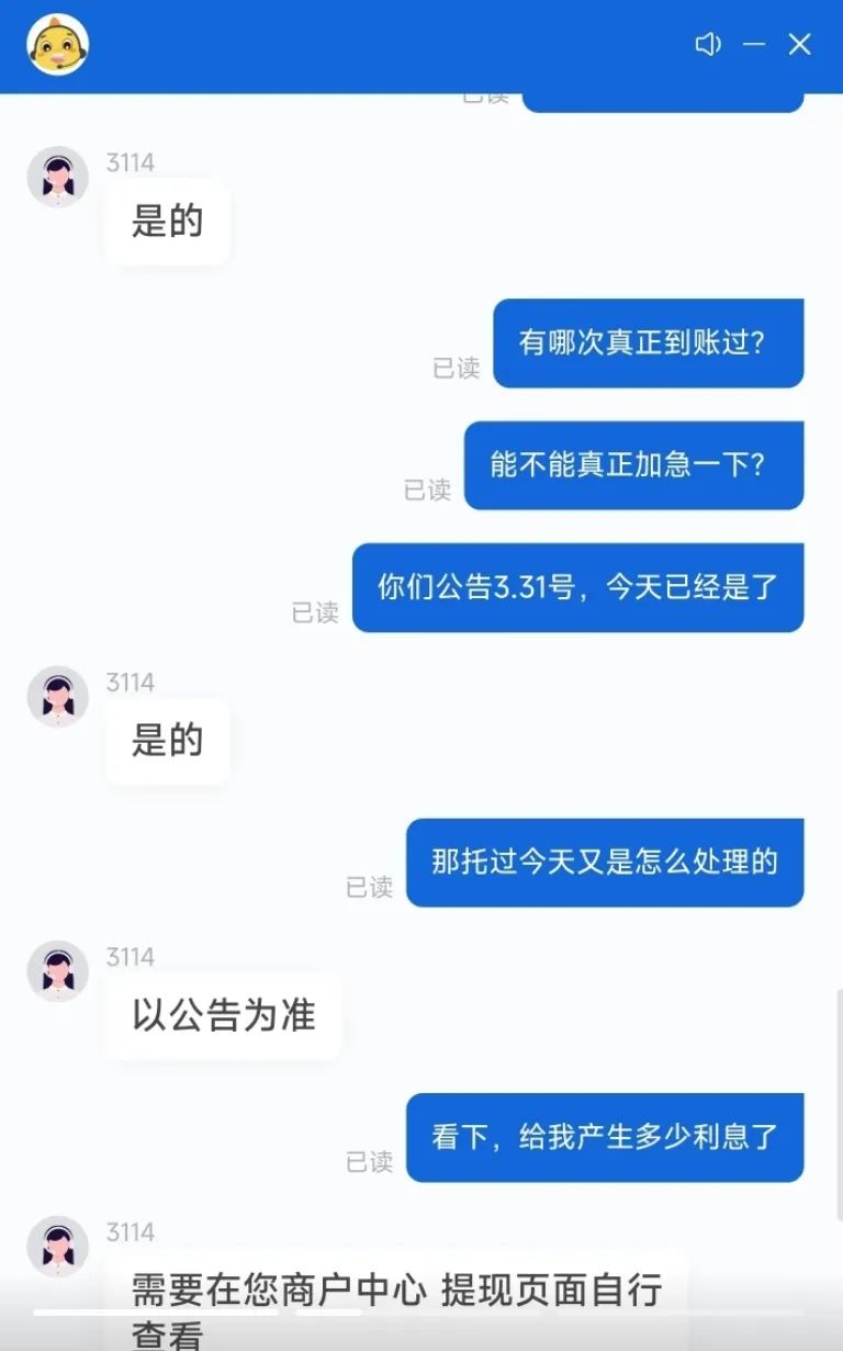但是得到的回復(fù)不是“幫你加急或者催業(yè)務(wù)員”,就是“需要您在商戶中心提現(xiàn)頁面自行查看”“以新公告為準(zhǔn)”。