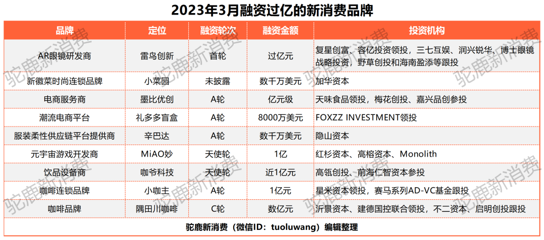 2023年3月份新消費(fèi)賽道融資月報(bào)