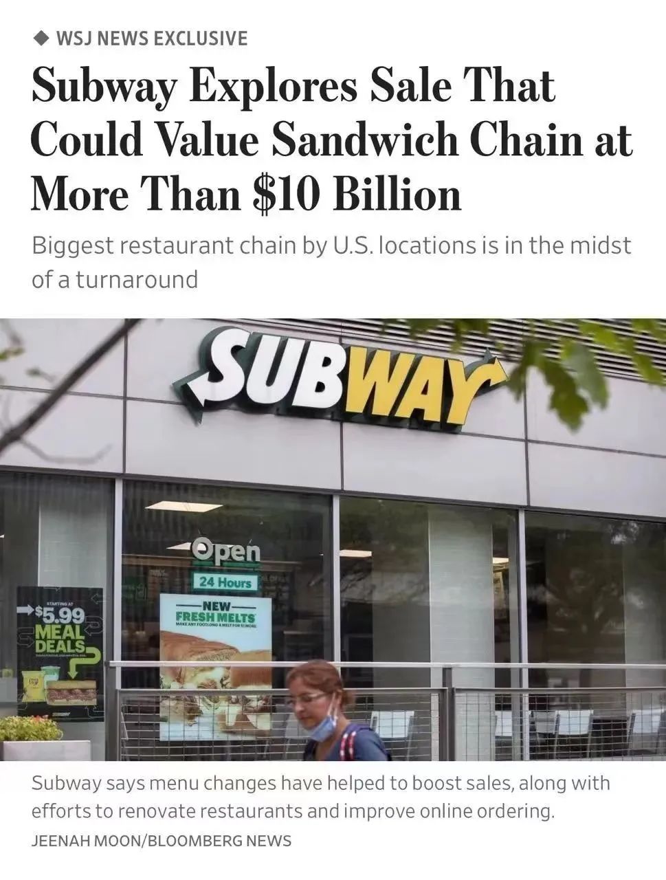 就在近日,據(jù)華爾街日報報道,賽百味已聘請顧問需求出售自己。高盛資產和貝恩資本,以及私募股權公司TDR Capital和TPG有意收購,已經提出了對賽百味的指示性要約。網傳當前賽百味估值為100億美元。