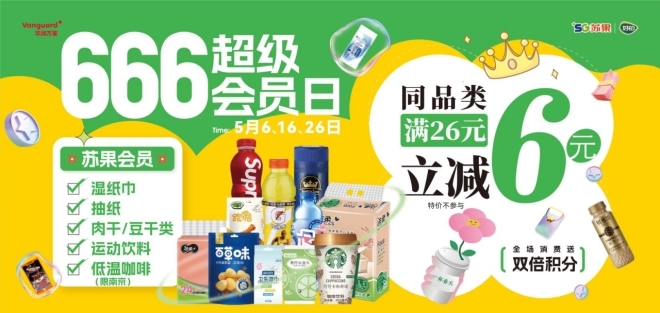 同時(shí),為更好的與年輕客群交朋友,“蘇果好的”5月還將繼續(xù)開(kāi)展“不焦綠便利店”主題營(yíng)銷(xiāo),吃掉焦慮,回收壞情緒。針對(duì)五一宅家慢生活人群,組織休閑零食、啤酒、果汁、茶飲等開(kāi)展2件優(yōu)惠價(jià)。針對(duì)高考群體,聚焦乳品、能量飲料等開(kāi)展會(huì)員專(zhuān)享價(jià);并持續(xù)打造#123寵粉節(jié)、#666超級(jí)會(huì)員日、#超級(jí)吃貨日等會(huì)員IP活動(dòng),增強(qiáng)權(quán)益價(jià)值感:會(huì)員1-3日到店即可享3倍積分;6日、16日、26日指定品類(lèi)滿26元立減6元、每周四自營(yíng)鮮食85折(短保面包、冷藏甜品、便當(dāng)、鹵菜)。