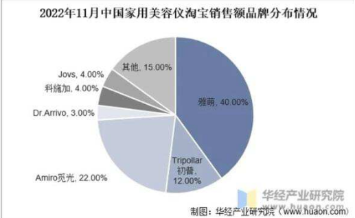 華經(jīng)產(chǎn)業(yè)研究院數(shù)據(jù)顯示,2022年11月美容儀淘寶銷售額品牌分布中,雅萌的占比達到40%,其次是Amiro和Tripollar,占比分別為22%、12%,而Jovs、科施加、Dr.Arrivo也分別占據(jù)了4%、4%和3%。這其中,僅有Amiro一家是中國品牌,其他都是海外品牌。