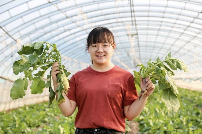 今年,他們負(fù)責(zé)的土地從之前的20畝拓展到了150多畝,引入黑皮花生、奶白菜、紫色油菜以及各種各樣的胡蘿卜,還在大棚里種了玉米,并想給所有蔬菜都“富上硒”!安粌H要種好,賣好,還要領(lǐng)人來玩!”