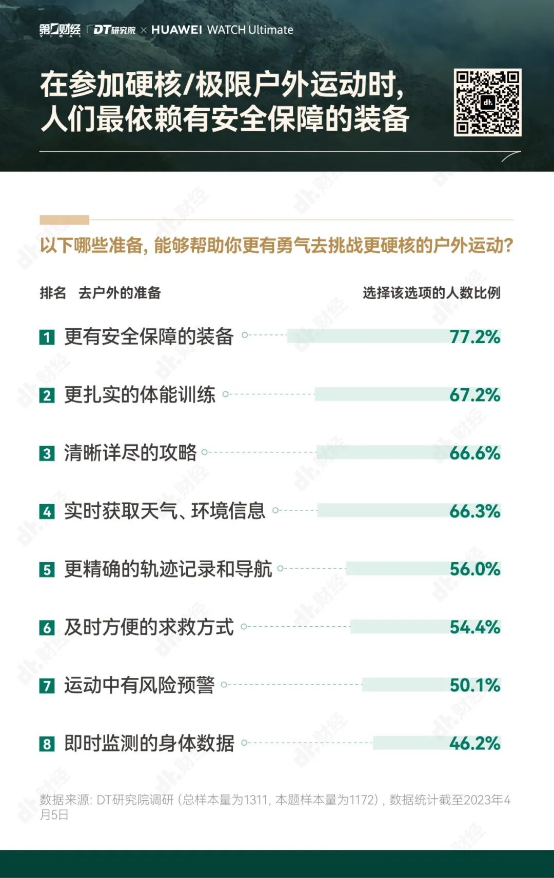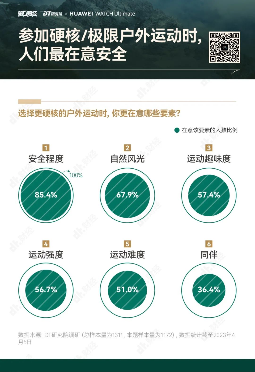 在戶外運(yùn)動(dòng)走向硬核的浪潮中,DT研究院聯(lián)合華為WATCH Ultimate 非凡大師發(fā)布這份《無畏前行:2023戶外運(yùn)動(dòng)報(bào)告》,不僅呈現(xiàn)了對(duì)于當(dāng)下戶外運(yùn)動(dòng)發(fā)展的趨勢(shì)觀察,也額外地,附上了一份戶外運(yùn)動(dòng)安全指南。