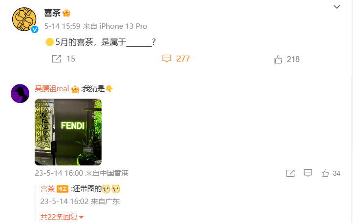 在其他社交平臺上,KOL們也在陸陸續(xù)續(xù)“透露”出這次喜茶的新聯(lián)名對象——FENDI。