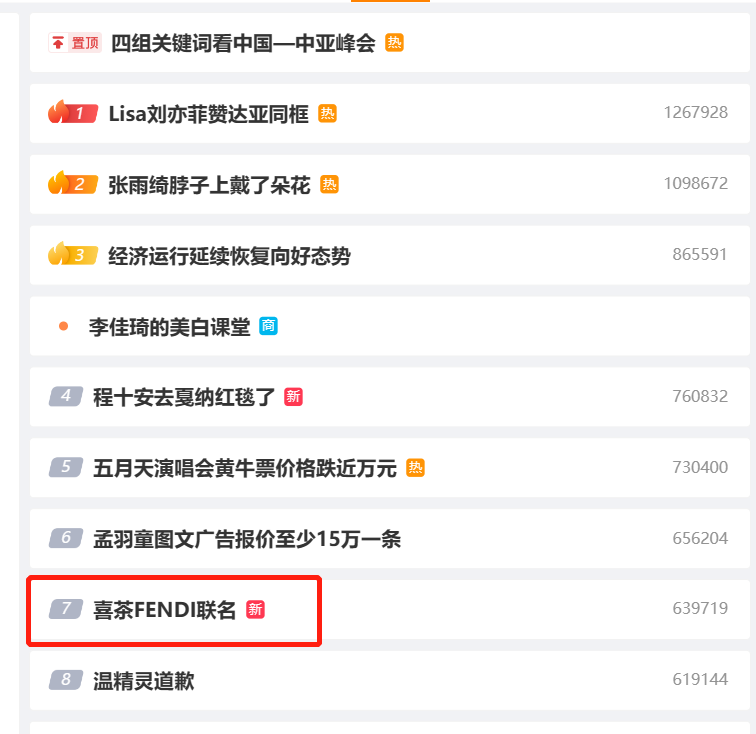昨天上午,#喜茶和FENDI聯(lián)名#的話題沖上微博熱搜第七位。