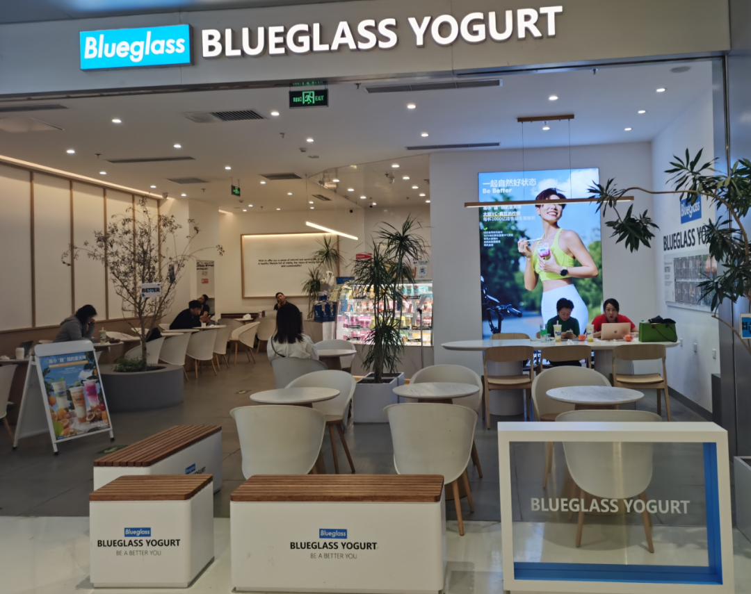Blueglass是地道的中國品牌,2012年5月,第一家門店在北京華貿(mào)購物中心亮相,此時(shí),Blueglass還未產(chǎn)生,門店的招牌上還寫著“阿秋拉尕青藏酸奶”。