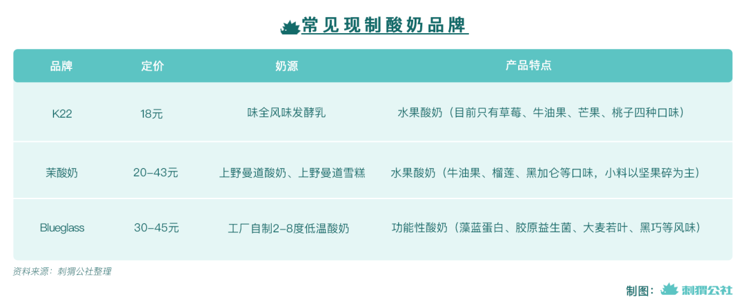 從合生匯一家商場中入駐的酸奶品牌也能看出,現(xiàn)制酸奶領(lǐng)域低端、中端、高端的細(xì)分市場已經(jīng)形成,不同價(jià)位的品牌有各自的打法與商業(yè)模式,本文主要以K22、茉酸奶、Blueglass三家酸奶品牌為例,對(duì)其各自的創(chuàng)新點(diǎn)與優(yōu)勢進(jìn)行對(duì)比分析。
