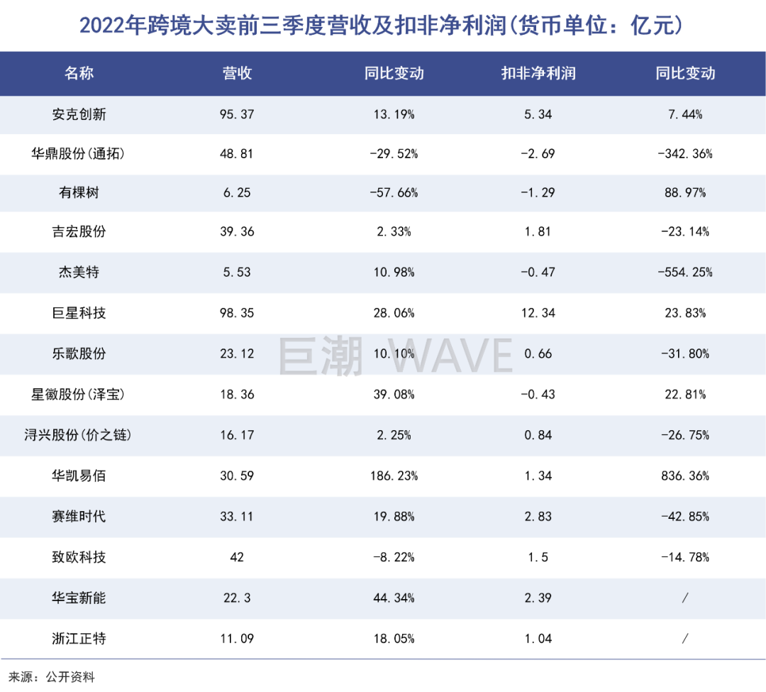 平臺(tái)外部,跨境電商行業(yè)低利潤周期仍在延續(xù)。據(jù)不完全統(tǒng)計(jì),14家A股上市的跨境電商企業(yè)中近80%在2022年前三季度依然保持業(yè)績?cè)鲩L,但受海外消費(fèi)市場大環(huán)境影響,部分企業(yè)出現(xiàn)增收不增利的情況。