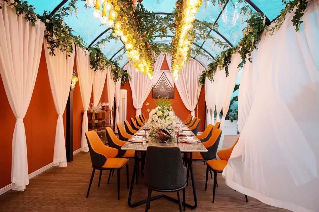 “你去很多餐廳,它會有音樂、舞蹈演出,但大多數(shù)顧客其實并不喜歡一直有人唱歌和演藝,會覺得氛圍很吵,不放松。所以我們的演藝是都為顧客需求去做,比如求婚、團(tuán)建……,大多數(shù)都是短暫的十幾二十分鐘,不會影響其他顧客就餐”;