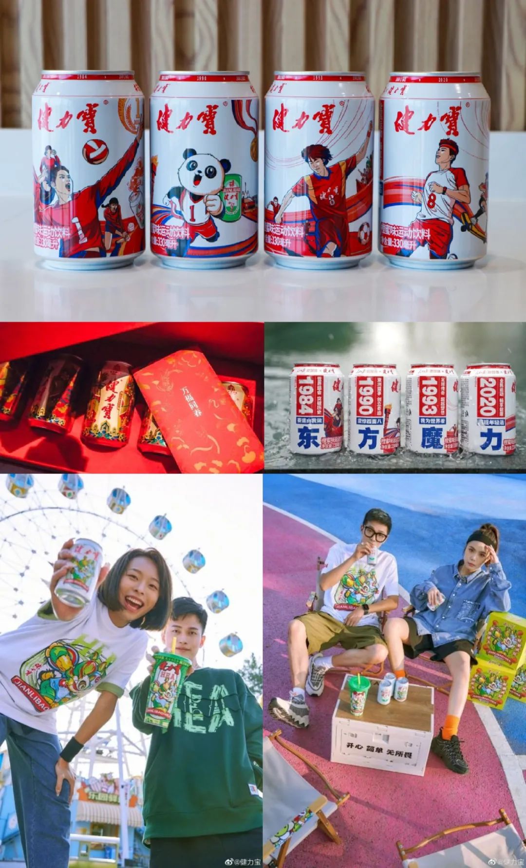 除了對(duì)核心單品常規(guī)款的更新以外,健力寶還與時(shí)下備受年輕人喜愛(ài)的IP聯(lián)名:2019年9月故宮博物館與健力寶正式簽約,之后陸續(xù)推出了聯(lián)名版祥龍納吉罐、龍鳳呈祥瓶、太平有象罐、君子之趣罐等產(chǎn)品;2020年健力寶與人民日?qǐng)?bào)新媒體,聯(lián)手推出了“東方魔力”罐,以中國(guó)體壇發(fā)展的幾個(gè)高光時(shí)刻為主題,展示敢拼也敢搏的運(yùn)動(dòng)精神,也希望這種精神被人們銘記且傳承下去。2022年,健力寶和潮牌HEA達(dá)成跨界聯(lián)名合作,進(jìn)一步加深品牌的國(guó)潮印記。