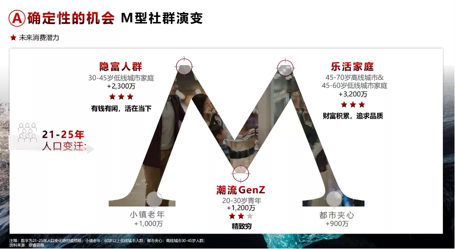 精致省人群組成復(fù)雜。按照消費(fèi)潛力劃分,精致省人群既有M型兩個(gè)頂角的一部分人,也有Z世代和都市夾心層。