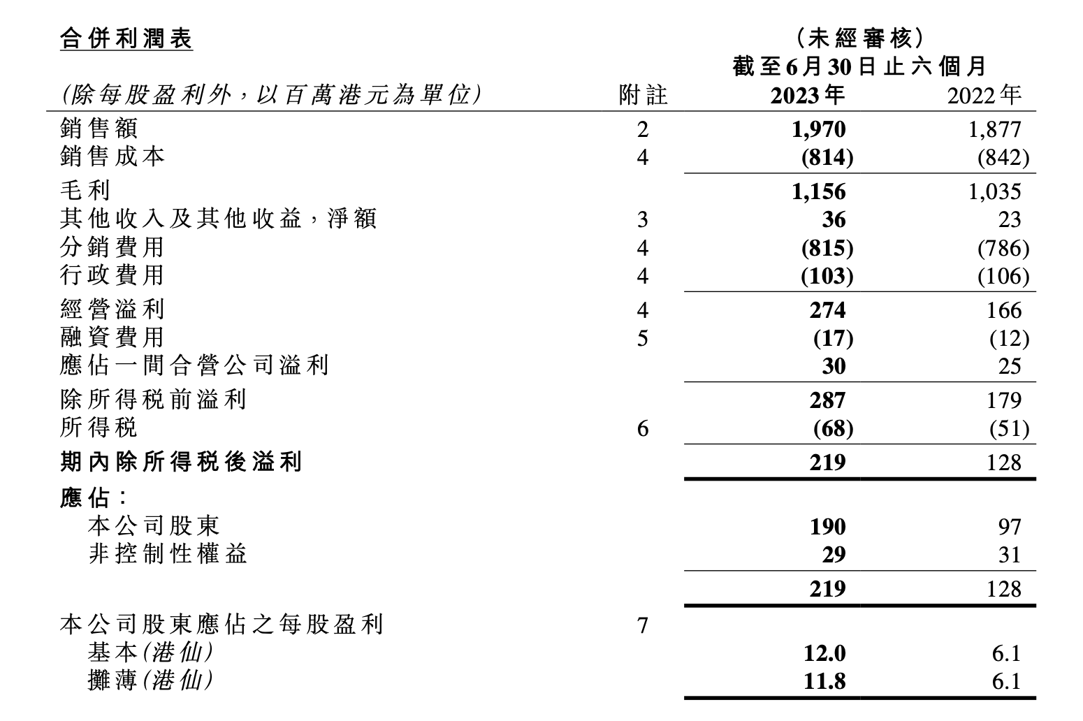 報(bào)告顯示,佐丹奴銷(xiāo)售額增加5.0%至19.7億港元,2022年同期18.77億港元。大中華、東南亞及海灣阿拉伯國(guó)家合作委員會(huì)三大市場(chǎng)均錄得增長(zhǎng)。股東應(yīng)占凈溢利急升至1.9億港元,凈利潤(rùn)率為9.6%,2022年同期9700萬(wàn)港元。