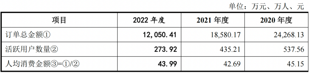 招股書顯示,報(bào)告期內(nèi),在活躍用戶中,選擇復(fù)購(gòu)的用戶數(shù)量分別為87.38萬(wàn)人、72.40萬(wàn)人、37.08萬(wàn)人,2022年的復(fù)購(gòu)用戶較2021年減少了48.78%。