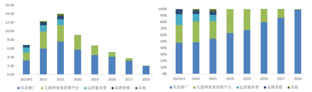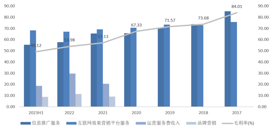 針對(duì)業(yè)績(jī)的下滑,值得買(mǎi)給出的解釋是2022年宏觀承壓下,企業(yè)減少?gòu)V告投放所致。其中值得買(mǎi)廣告業(yè)務(wù)所屬的信息推廣服務(wù)的營(yíng)收從7.6億元下降22%至5.96億元。