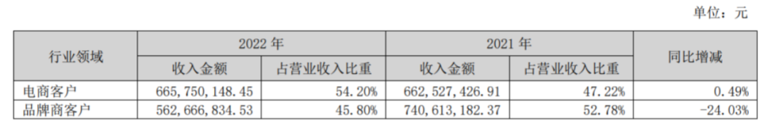 在客戶結(jié)構(gòu)方面,根據(jù)值得買(mǎi)2022年財(cái)報(bào)披露,公司電商客戶占比54%,品牌商客戶因廣告投放預(yù)算減少,占比從2021年的52%下降至46%。具體來(lái)看,根據(jù)公司可轉(zhuǎn)債募集書(shū)披露,2022年上半年,值得買(mǎi)的前三大客戶分別為京東(32.71%)、阿里巴巴(13.29%)和藍(lán)色光標(biāo)(7.12%)。