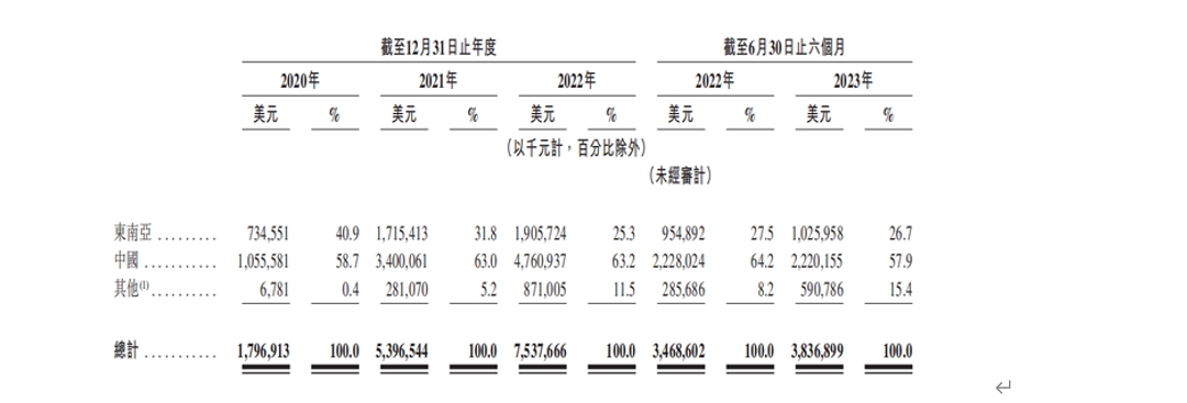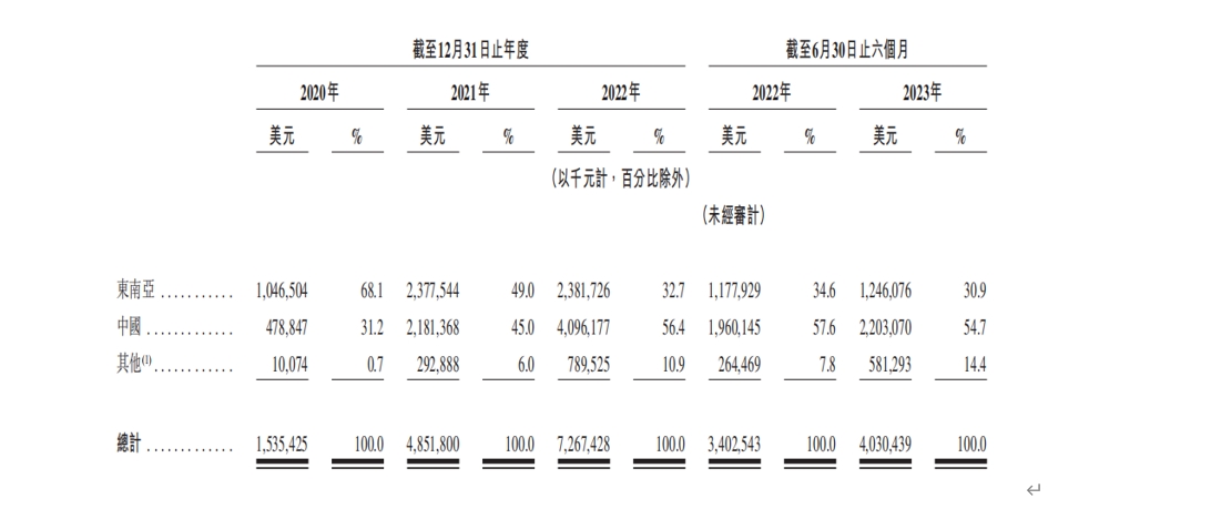 各區(qū)市場收入及占比,圖源招股書