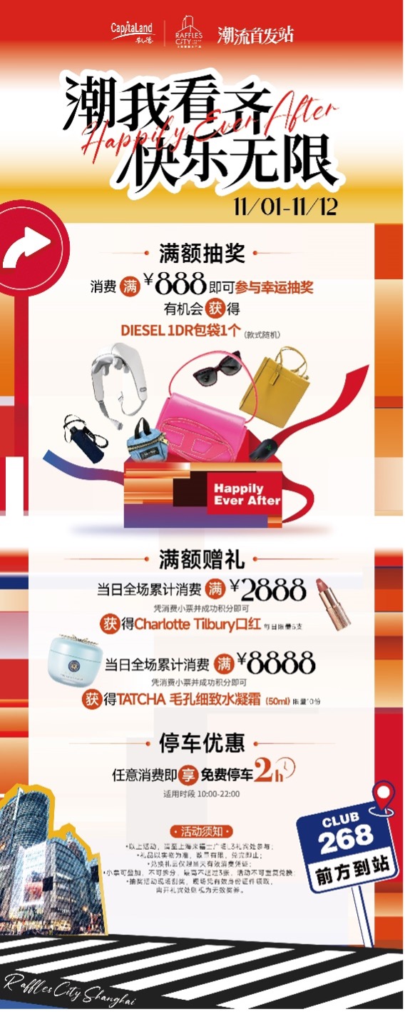 11月1日,上海來福士廣場二十周年慶典正式啟幕,攜手知名品牌DIESEL、珀萊雅開啟限時獨家好禮體驗,召集都市玩家同頻相聚「CLUB 268」,打造全新「潮流首發(fā)站」,一起探索時髦首發(fā)靈感,盡享驚喜不斷的“綺妙狂歡”之旅。