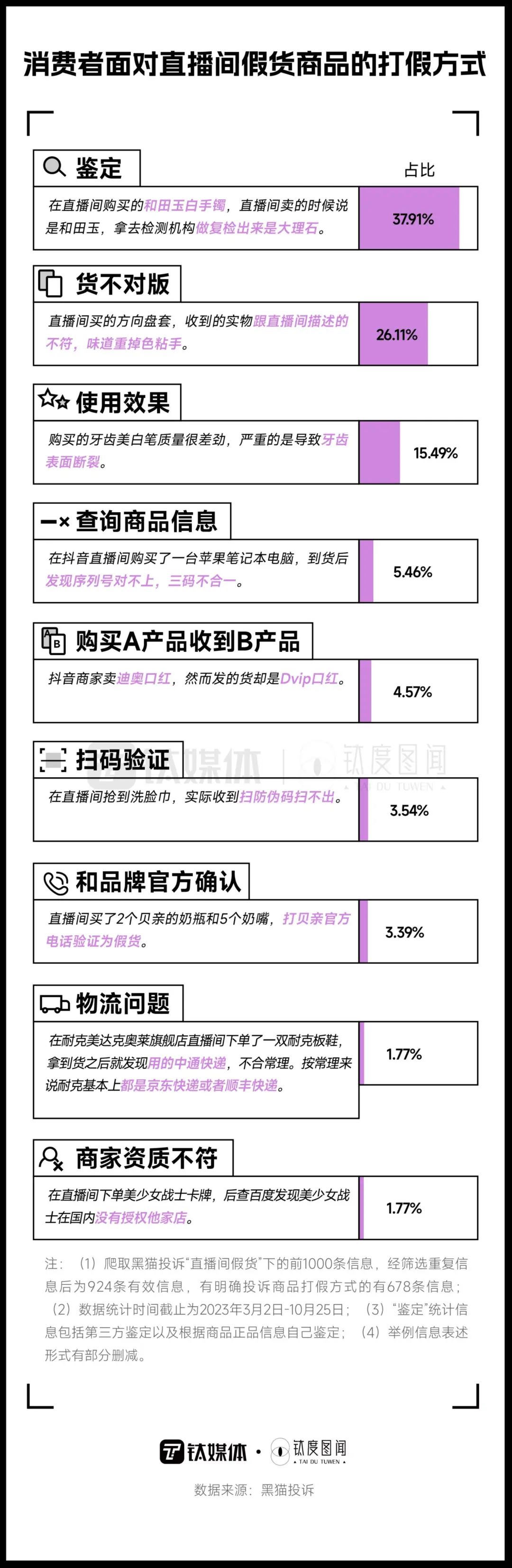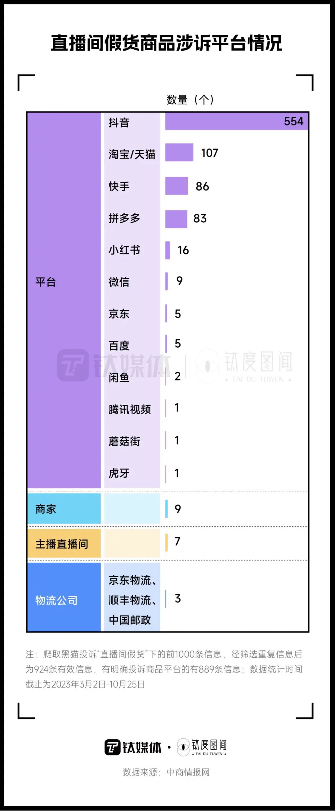 不止“李佳琦直播間”,此前“劉畊宏直播間”、“羅永浩直播間”均被曝出過(guò)產(chǎn)品售假問(wèn)題。在選品較為嚴(yán)格的頭部主播直播間,假貨問(wèn)題都層出不窮。在直播間中,哪些品類(lèi)更容易買(mǎi)到假貨?在假貨問(wèn)題上,消費(fèi)者折損了多少錢(qián)?本期鈦媒體·鈦度圖聞通過(guò)分析“黑貓投訴”的信息帶你解密直播間的假貨重災(zāi)區(qū)。
