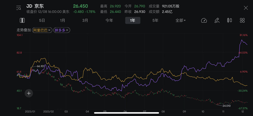 截圖來(lái)自東方財(cái)富APP,過(guò)去一年京東美股市值持續(xù)走低