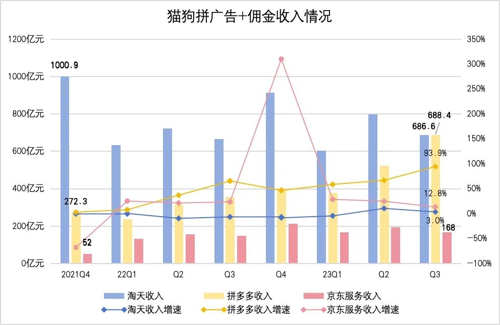 平臺(tái)廣告營(yíng)銷反映商家的經(jīng)營(yíng)活躍度,傭金收入則體現(xiàn)了經(jīng)營(yíng)結(jié)果。據(jù)京東2023年三季度財(cái)報(bào),在平臺(tái)屬性不斷增強(qiáng)的變革策略下,京東非商品收入主要包括廣告與傭金,第三季度收入為 168 億元,同比增長(zhǎng) 12.8%,占京東零售收入的 7.9%。京東自營(yíng)所帶來(lái)的商品收入仍占據(jù)絕對(duì)主導(dǎo)。