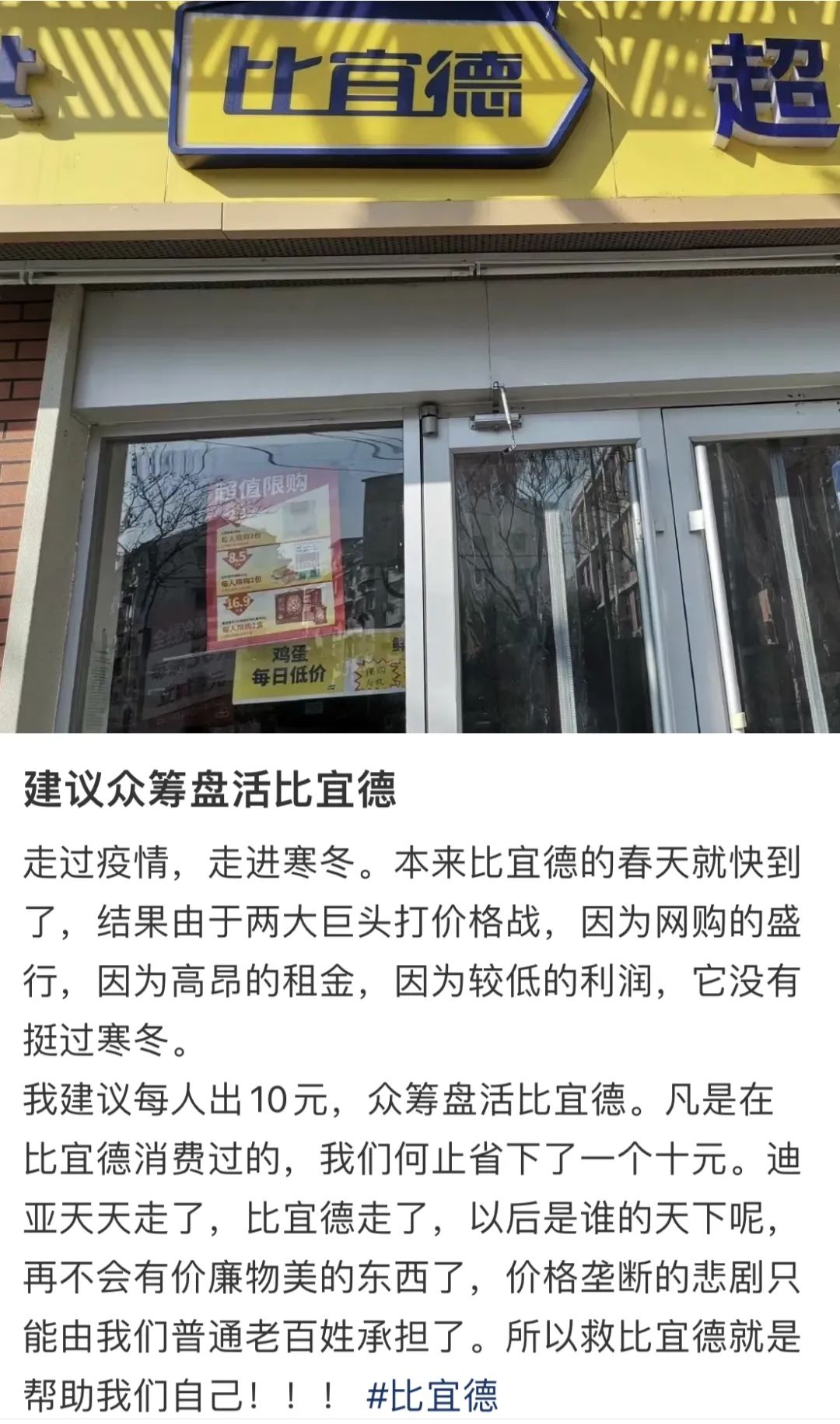其中一篇“建議眾籌盤活比宜德”的筆記寫道:“我建議每人出10元,眾籌盤活比宜德……迪亞天天走了,比宜德走了,以后是誰的天下呢,再也不會有價廉物美的東西了!苯刂涟l(fā)稿,該篇筆記被126人點贊。