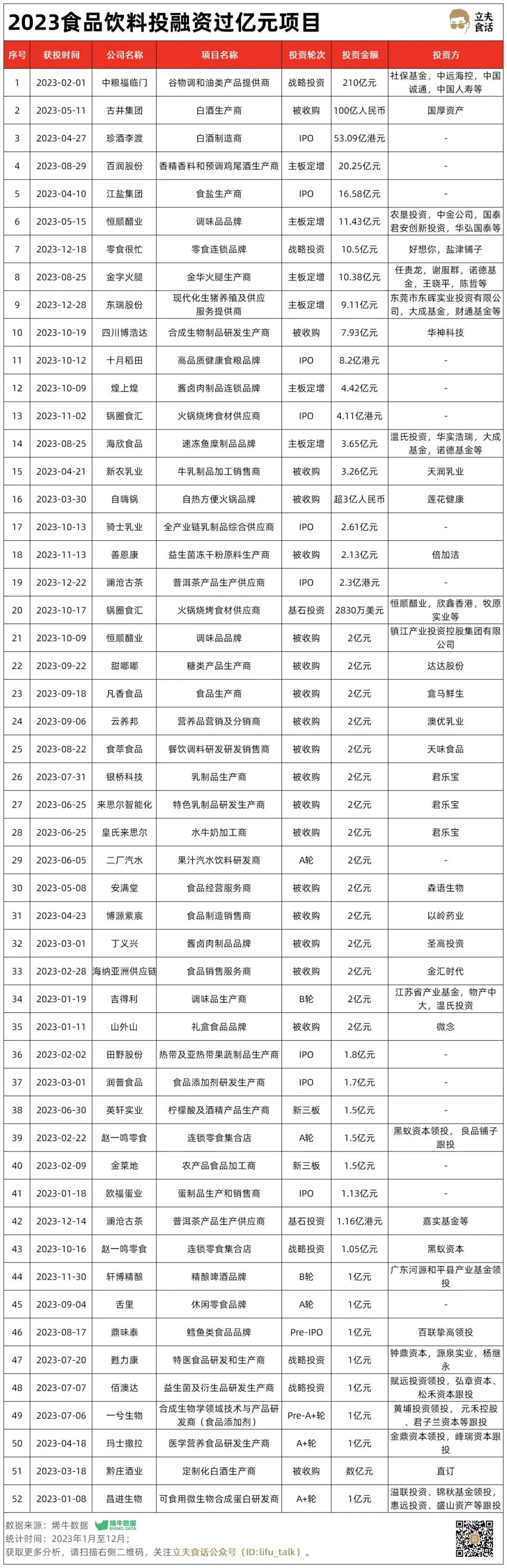 2023食品飲料投融資過(guò)億項(xiàng)目