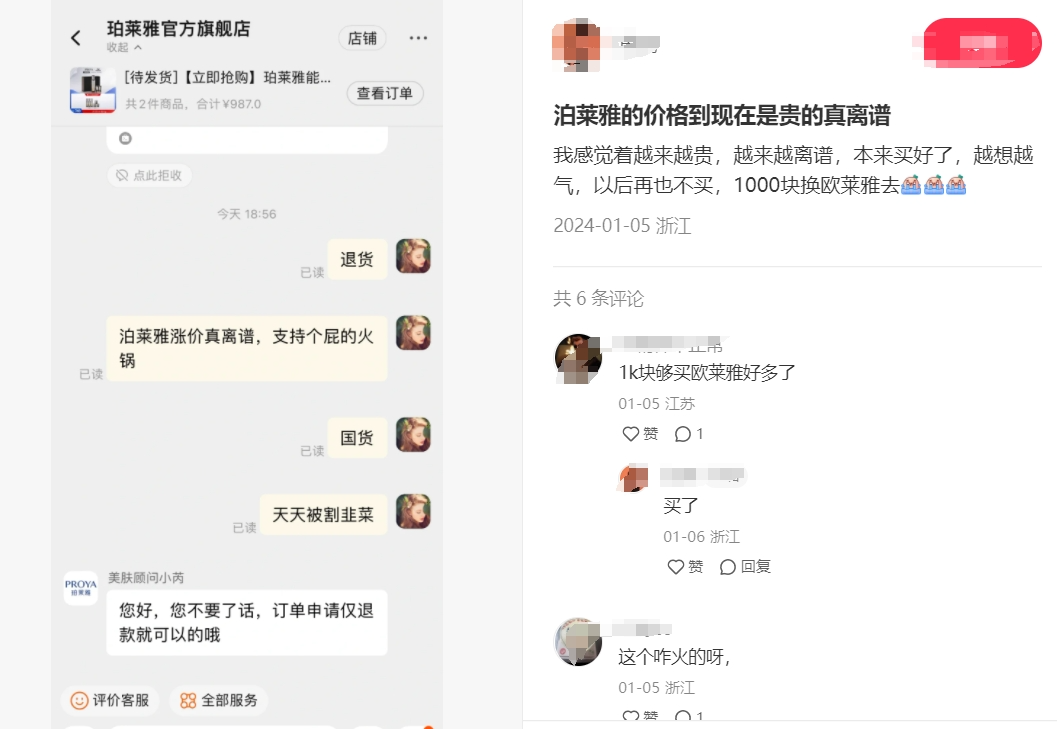重營銷、輕研發(fā)、重線上渠道的珀萊雅,最不可避免的問題就是口碑不一;一邊是社媒平臺(tái)上的“花式種草”,一邊是消費(fèi)者對產(chǎn)品質(zhì)量和服務(wù)的詬病。