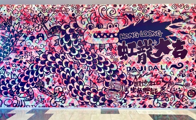 凱德虹口攜手80后漫畫家、波普藝術(shù)家魏一番,掀起一場“虹龍大吉”的新式潮玩藝術(shù)熱潮。一條色彩絢麗的巨大“波普龍”炸裂登陸正門廣場,吸引了無數(shù)來往路人的目光。這條自魏一番代表IP“仙龍掌”中衍生出的“虹龍”扎根虹口、期許未來,已經(jīng)成為龍年熱門打卡地標;▓@路、商場內(nèi)也出現(xiàn)了許多俏皮龍的身影,吉祥金色與喜慶紅色交織,為年味更添一筆濃厚氛圍。