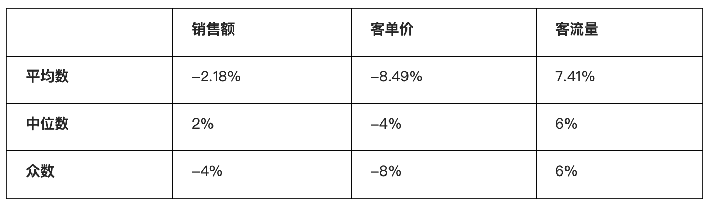 1、客流普遍增加,但客單價(jià)和銷售額小幅下降。