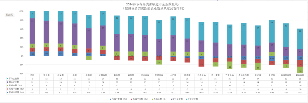 近日,中國連鎖經(jīng)營協(xié)會(huì)采購專業(yè)委員會(huì)開展了2024年春節(jié)期間銷售數(shù)據(jù)的調(diào)查工作。此次調(diào)查涉及全國41家商超企業(yè),調(diào)查收取的銷售數(shù)據(jù)為區(qū)間數(shù)據(jù),具體信息如下: