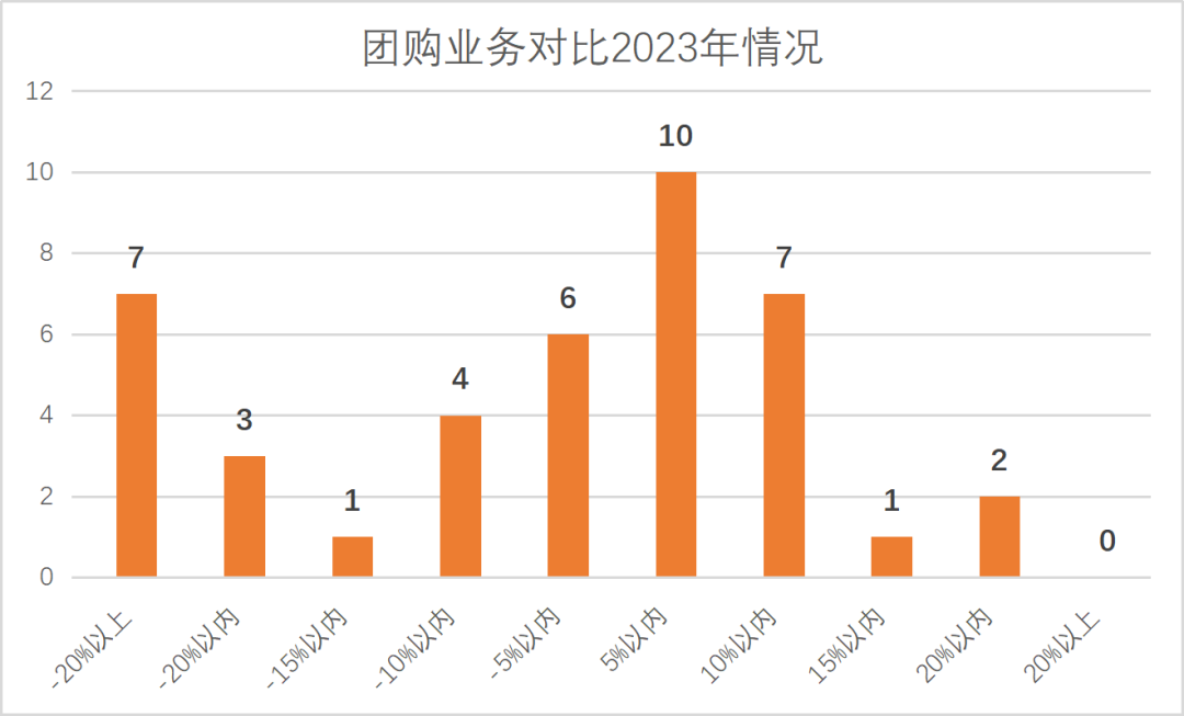 整體來看,好壞各半,團(tuán)購大幅降低的企業(yè)數(shù)高于大幅增長的企業(yè)數(shù)。