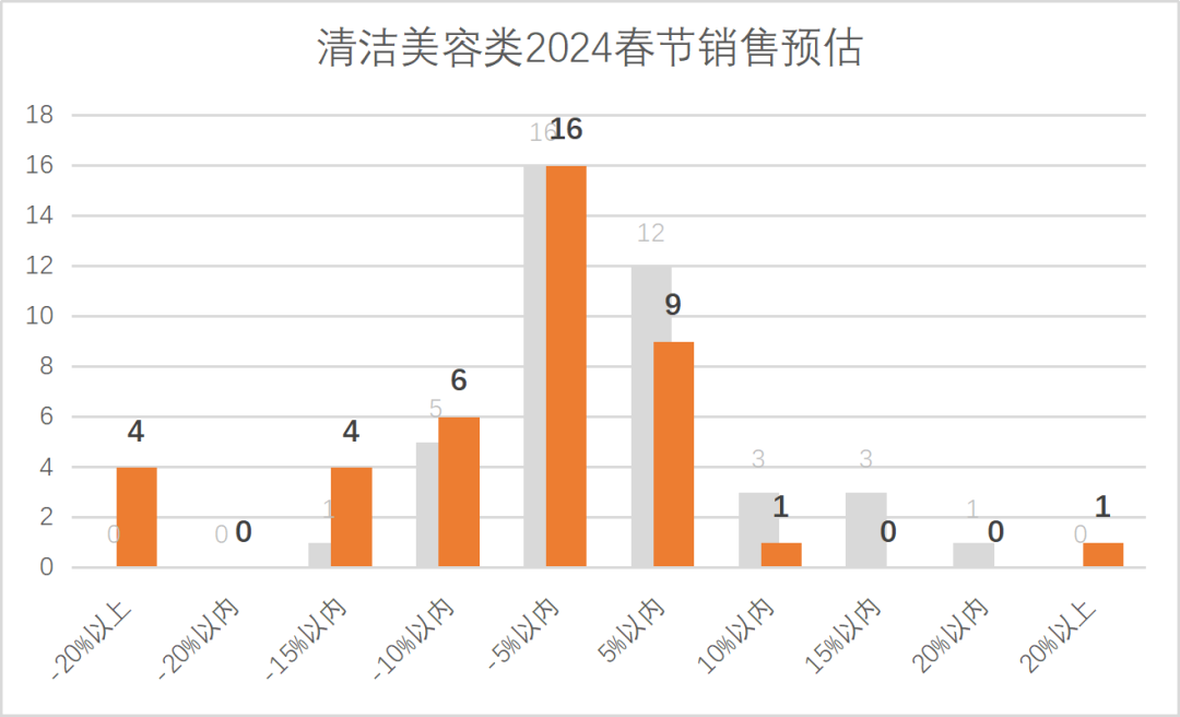 有20家企業(yè)銷售上漲(占比49%),21家企業(yè)銷售下跌(占比51%),預(yù)估銷售的中位數(shù)為增長-5%,眾數(shù)為5%,平均值為0%。