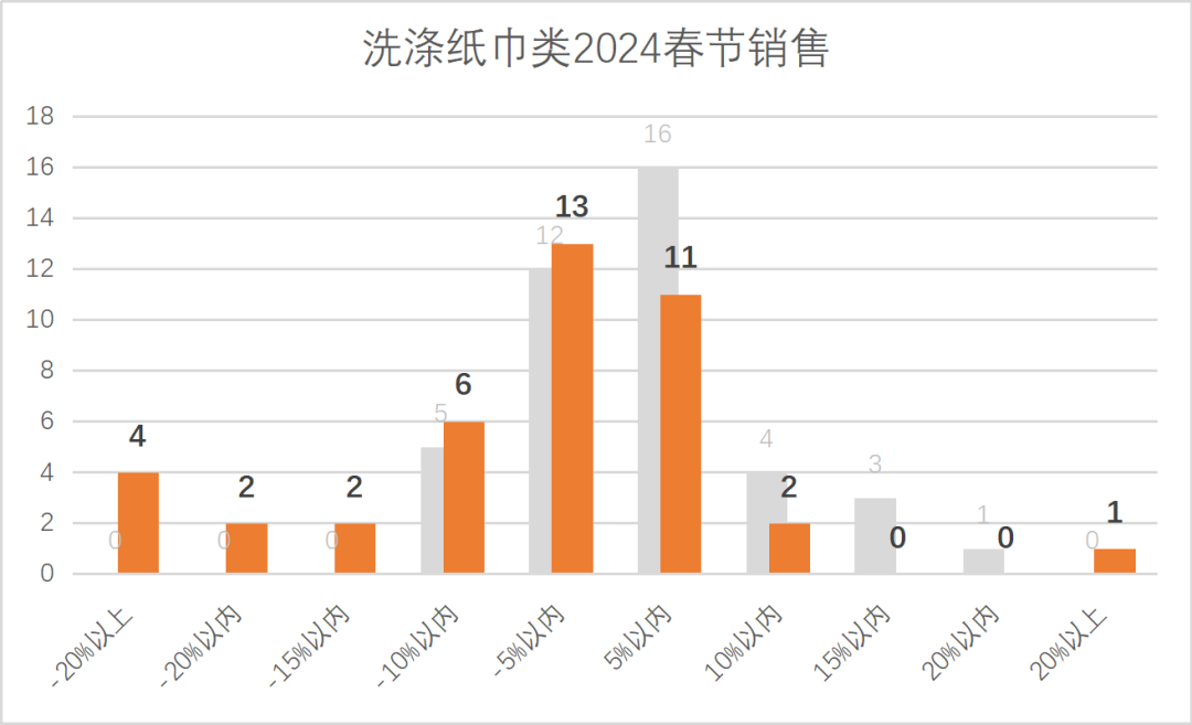 洗滌紙巾類商品日常備貨較充足,節(jié)日屬性不明顯,且缺少活動(dòng),導(dǎo)致銷售低于預(yù)期。