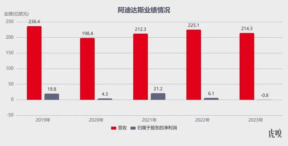 從數(shù)據(jù)上看,阿迪達(dá)斯仍未回到增長(zhǎng)軌道。2023年,其營(yíng)收為214.3億歐元,同比下降約5個(gè)百分點(diǎn),不過(guò)如果不考慮匯率影響,收入規(guī)模和去年持平。