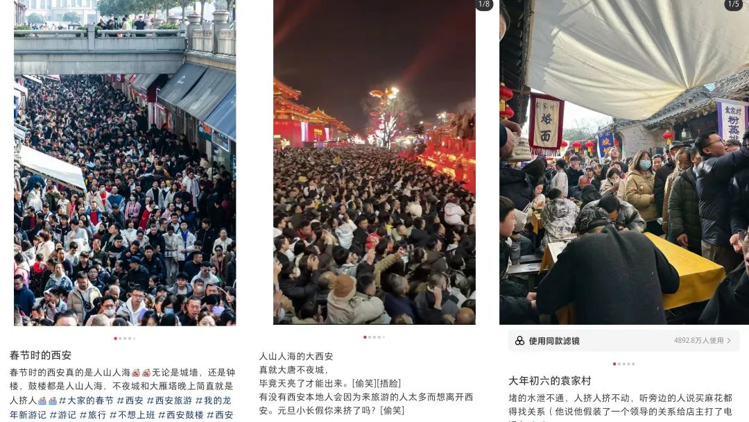 其次,地方旅游餐飲受到青睞。以西安為例,隨著春晚西安大唐不夜城的爆火,西安再次迎來旅游高峰期。永興坊、袁家村、大唐不夜城等相關(guān)旅游餐飲區(qū)相繼被游客擠爆。