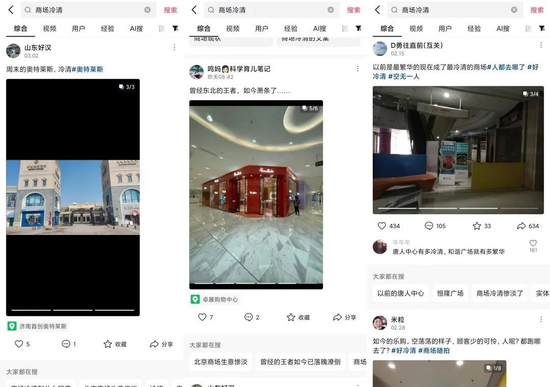 不僅西安商場(chǎng)客流在減少,各地有的商場(chǎng)也出現(xiàn)客流減少的情況。如各地網(wǎng)友紛紛吐槽;“周末的奧特萊斯,冷清”、“曾經(jīng)東北的王者,如今蕭條了”以前人多的商城,現(xiàn)在也蕭條不少!耙郧笆亲罘比A的,現(xiàn)在成了最冷清的商場(chǎng)”。