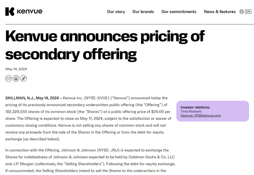 日前,青眼號(hào)外獲悉,強(qiáng)生計(jì)劃出售其在Kenvue科赴約9.5%的全部剩余股份,預(yù)計(jì)在5月17日完成。換言之,明天起,強(qiáng)生將徹底告別化妝品行業(yè),而科赴也將成為一家完全獨(dú)立的消費(fèi)品企業(yè)。