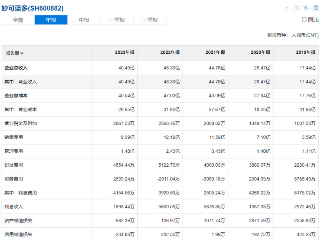 2023年財(cái)報(bào)顯示,妙可藍(lán)多營(yíng)業(yè)收入約為40.49億元,同比下降16.16%;歸母凈利潤(rùn)約為6344萬(wàn)元,同比下降53.9%;扣非凈利潤(rùn)約為717萬(wàn)元,同比下滑89.63%。此外,其在2024年一季度的營(yíng)收持續(xù)下滑,約為9.50億元,同比下降7.14%。