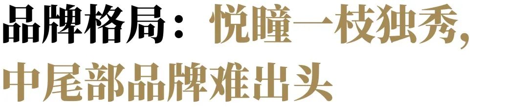 以磁吸假睫毛起家的悅瞳品牌可謂是一枝獨(dú)秀,并成功讓大眾留下了“品類=品牌”的品牌認(rèn)知。2023年磁吸假睫毛悅瞳品牌銷售額達(dá)5.4億元,在磁吸假睫毛市場(chǎng)占比高達(dá)89.9%。