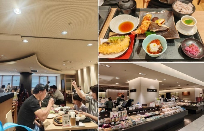 伊勢(shì)丹自有餐廳里一份包含刺身、天婦羅、四樣小菜、米飯和湯品的定食,售價(jià)是2300日元,約合100元人民幣,這個(gè)價(jià)格比外面的大部分餐廳都低。