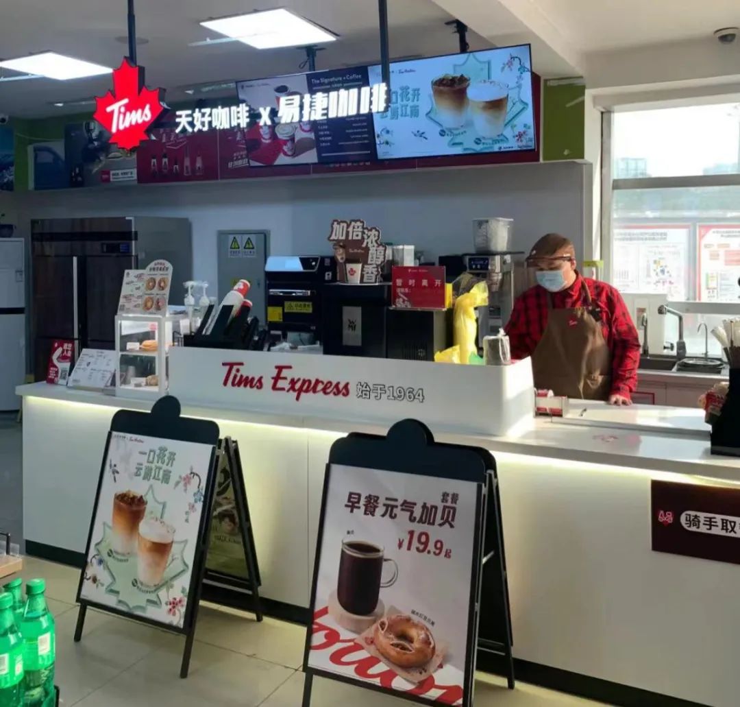 例如,庫(kù)迪推出便捷店型“COTTI Express”,但它并不是第一家瞄準(zhǔn)便利店的咖啡品牌。連鎖咖啡品牌Tims在去年5月已和中石化的易捷便利店“喜結(jié)連理”,開(kāi)出了“易捷×Tims Express”融合店,占地面積僅為20平方米左右。